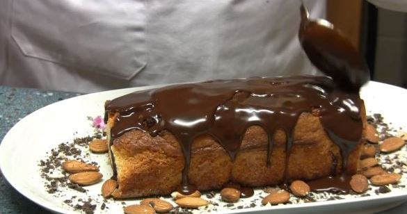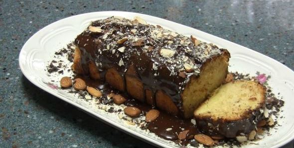 Spread the almond cake on a platter, sprinkle with powdered sugar or chocolate icing.
