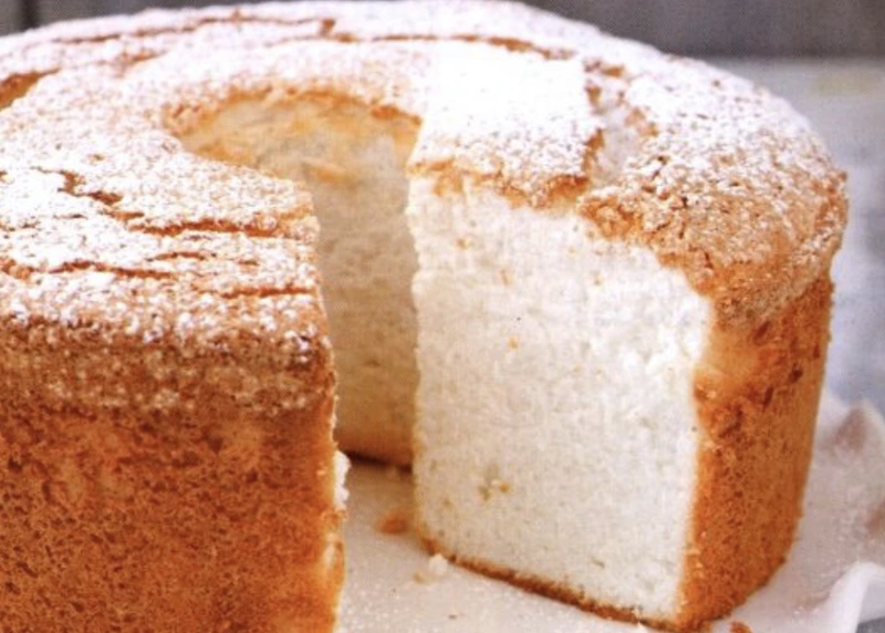 The snow-white “angelic” cake (or, in other words, the “angel food” cake) has the most delicate airy structure. This pie is made with whipped proteins, no butter added, making it light and low in calories.