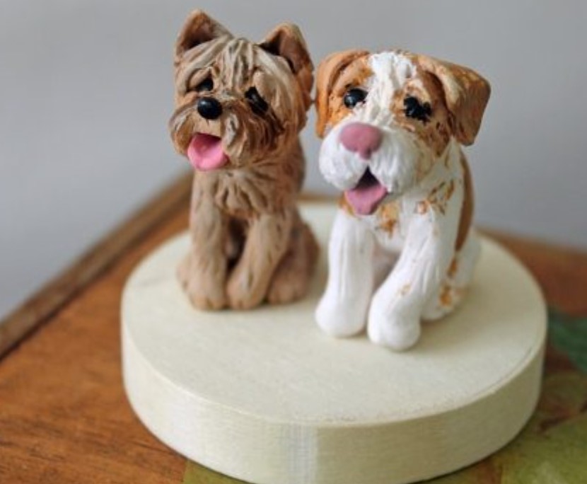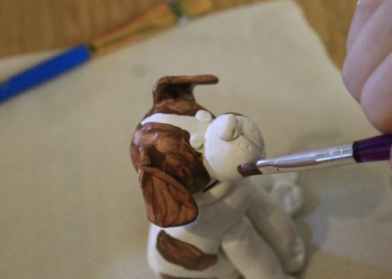 We dilute food colors as indicated on the package. I made a whole palette of mixes of beige and brown dyes – so that the shade of the coat turned out to be different for the two dogs. Let’s paint over and leave to freeze. I made one dog “fluffy” – after painting, on a slightly damp marzipan with a stick I began to draw “waves”.