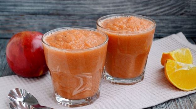 A thick vitamin smoothie made from carrots, apples, bananas, and orange gives bright colors to a gray day and saturates the body with useful minerals and fiber. And it prepares in minutes!