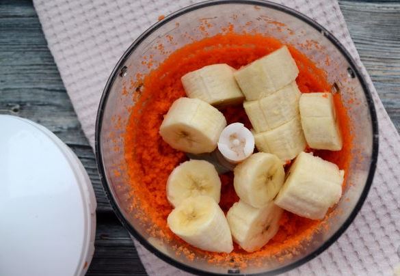 Grind the carrots at high speed for 1 minute. Add banana, chop for another 30 seconds.