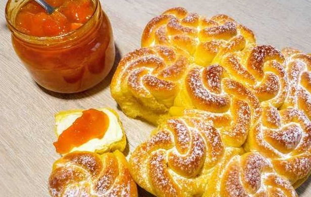 I have long wanted to show you this recipe. Gorgeous buns in the shape of roses, made from apricot dough! Very tasty, delicate as fluff! They are magical, be sure to try!
