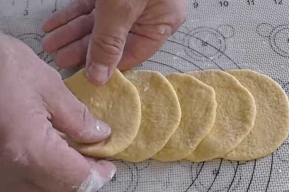 Now we roll each dough bun into a small cake.