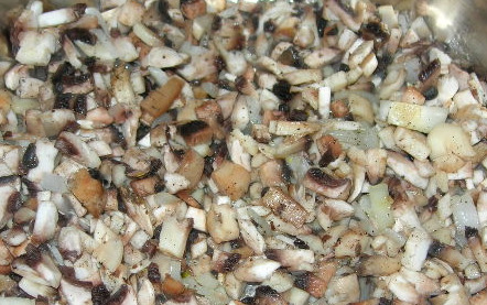 Fry mushrooms, onions, and garlic in a pan. Add sour cream and spices (pepper, salt) 5 minutes before cooking.