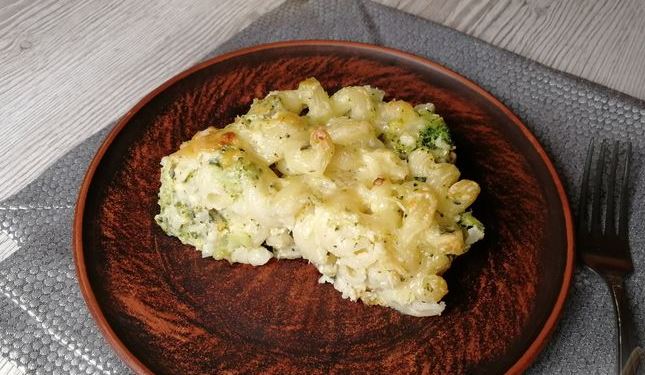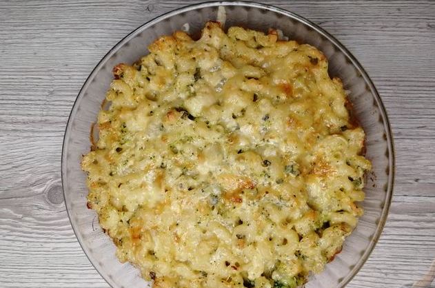 Make a juicy and delicious pasta casserole with cabbage (broccoli and cauliflower) and cheese for your family.