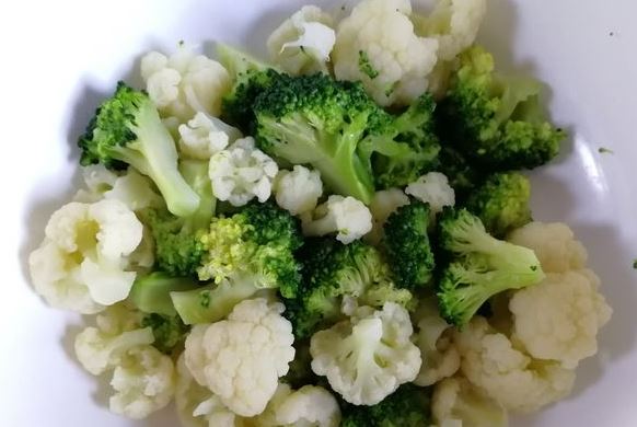 Broccoli and cauliflower are disassembled into inflorescences and boiled in salted boiling water for 5 minutes.