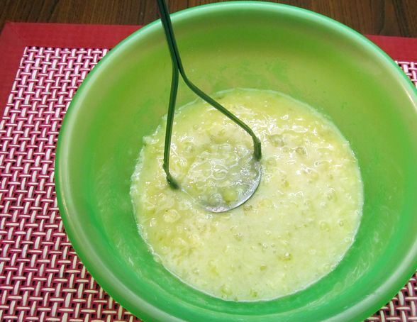 Mash bananas with sugar with a fork or mashed potato pusher.