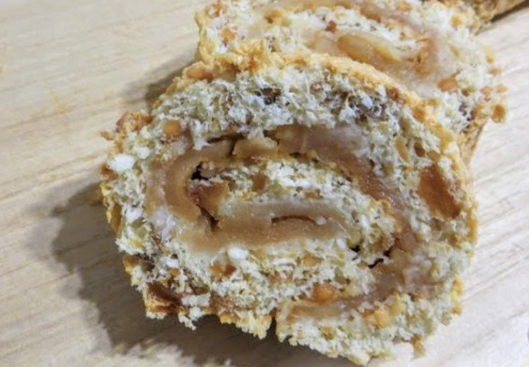 The fragrant apple layer, while hot, is rolled into a tight roll.