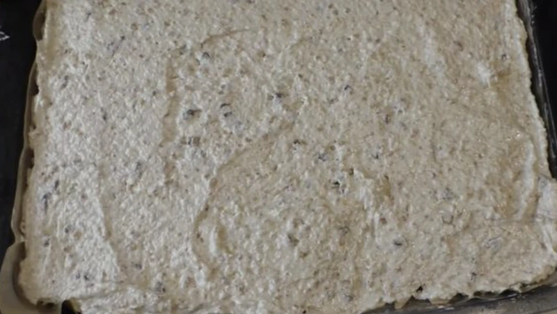 Mix the nuts with flour, baking powder, and coconut. Add raisins. We mix.