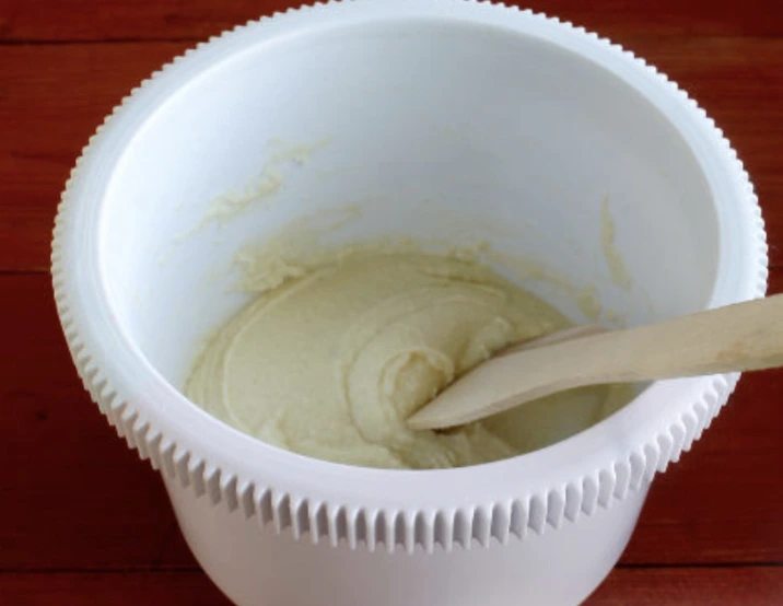 Continuing to beat the dough with a mixer at low speed, gradually add the flour mixed with baking powder. We bring the dough to homogeneity.
