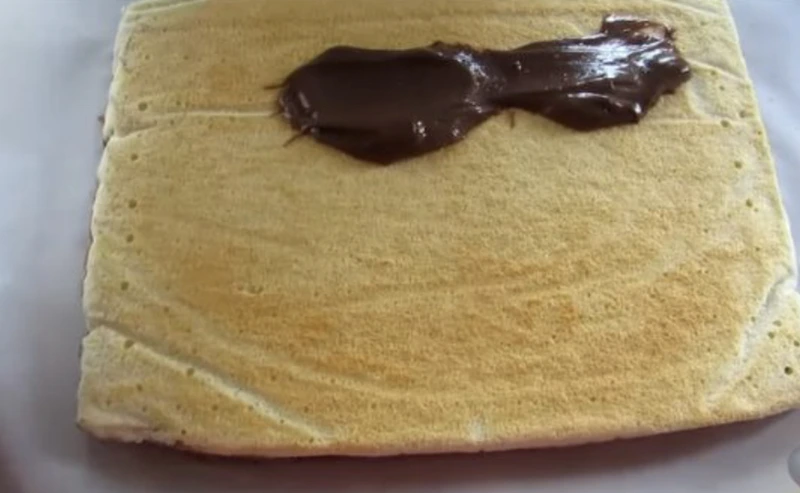 Apply the cream. We distribute more cream from one edge – this will be the center of the roll.