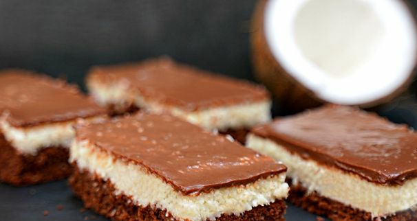 Add sugar, vanilla sugar, butter and coconut. Stir and place on the chocolate base.