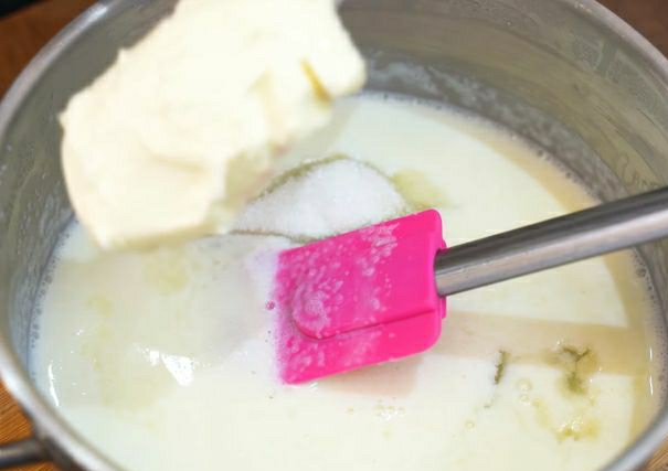 For the coconut filling, heat the milk, add semolina in a thin stream, cook until the first boiling bubbles. You will get a fairly liquid semolina porridge. Don’t worry, it will thicken later. I must say right away that semolina is not felt at all in the finished cream. If you want, you can replace it with starch (1 tablespoon).