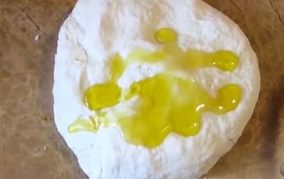 Knead the dough for a few minutes and add 1-2 tablespoons of oil. Then we knead for 5 minutes more. Let the dough stand for 2 hours under the film. I had the dough in a bowl right on the table.