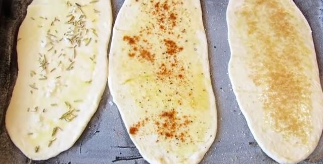 Lightly knead the dough and divide into 10 approximately equal parts. Roll each part of the dough into a ball, cover with a towel, and let stand for about 10 minutes. We also need salt, dry rosemary (you can take fresh), and 2 tablespoon. tablespoons of olive oil. Roll each blank into a long thin tongue.
