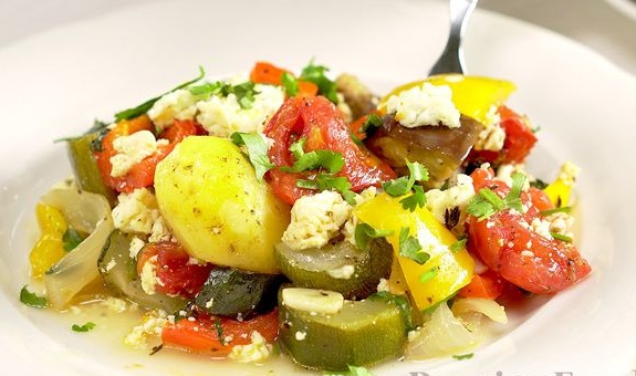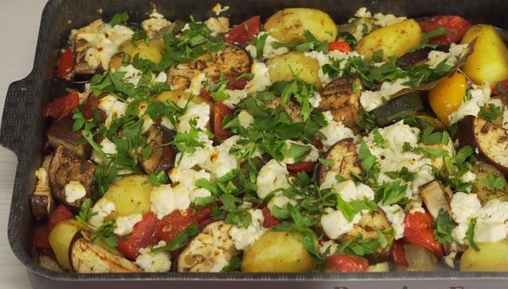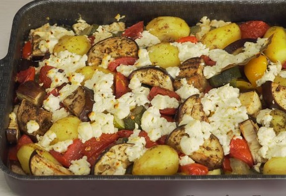 Preheat oven to 180 ° C and bake vegetables for 50 minutes. After 50 minutes, remove the foil and sprinkle the vegetables with crumbled feta cheese (or feta cheese). Cook vegetables in the oven for another 10 minutes.