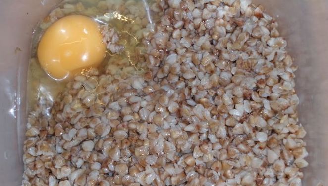 Pour 1 egg into a tray with ready-made buckwheat and salt to taste. Mix everything thoroughly.
