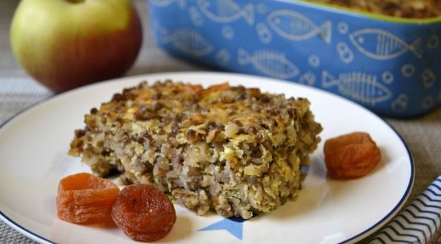 Buckwheat Casserole with Cottage Cheese, Apples, Dried Fruits and Walnuts