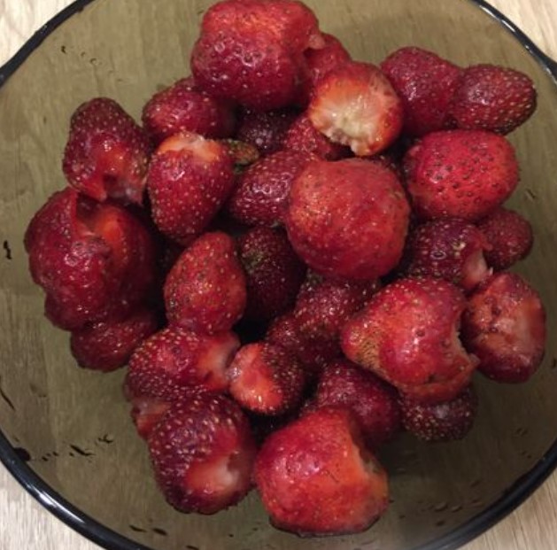 We wash the strawberries, tear off the tails.