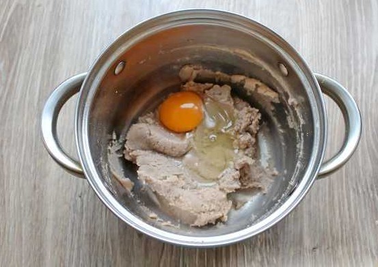 Break an egg into a saucepan of choux pastry.