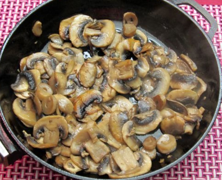 Meanwhile, rinse the mushrooms, dry them with a paper towel, and cut them into thin slices.