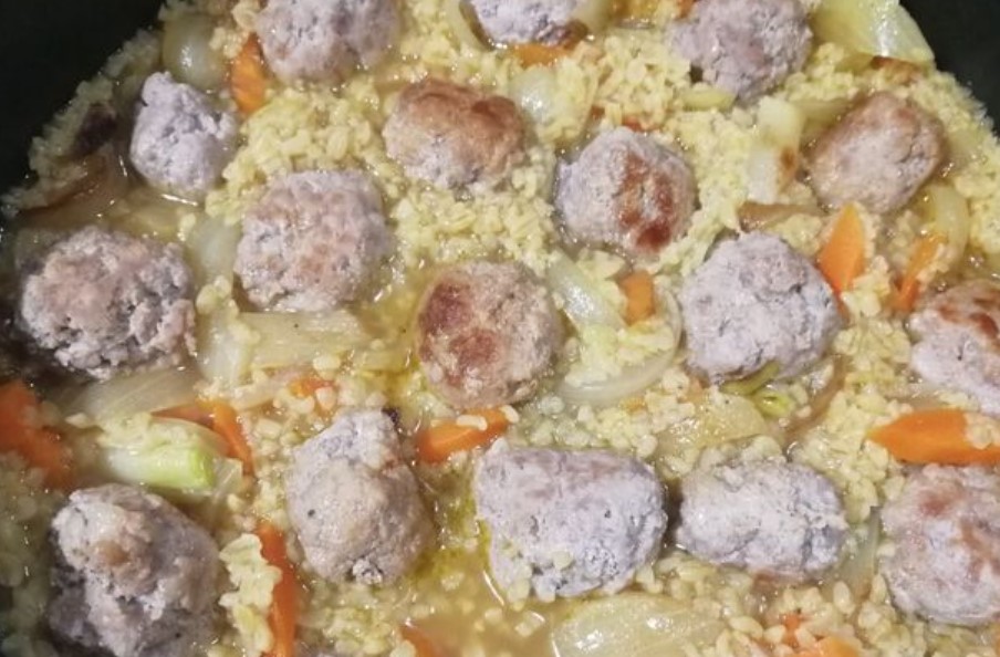 Bulgur with Meatballs and Vegetables (in a Pan)