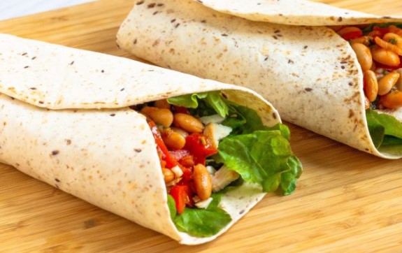 Burrito is a Mexican dish consisting of a soft wheat flatbread (tortilla) wrapped in a variety of fillings. I suggest taking beans and chicken breast as a filling. It turns out very tasty and satisfying!