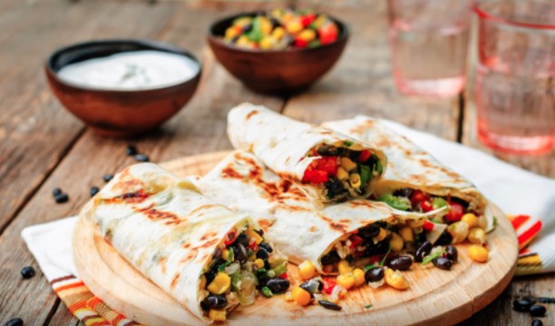 Arrange the tortillas on a work surface. Spread the beans, vegetable mixture, and cheese evenly over each. Wrap it up carefully. Place the burrito in a heatproof dish and place it in the oven for 20 minutes. Serve with salsa if desired.