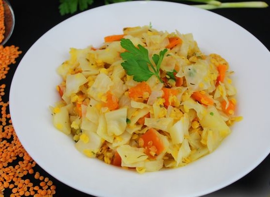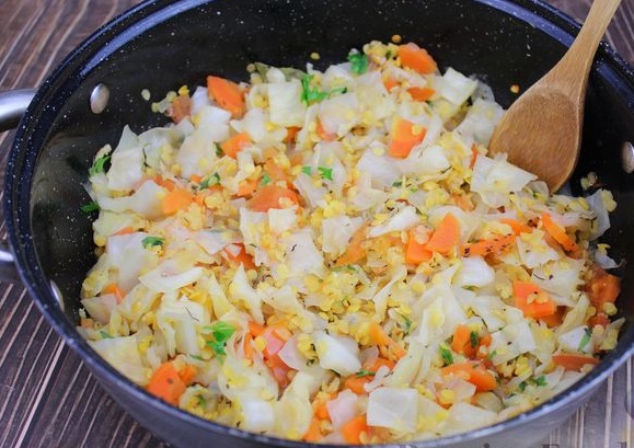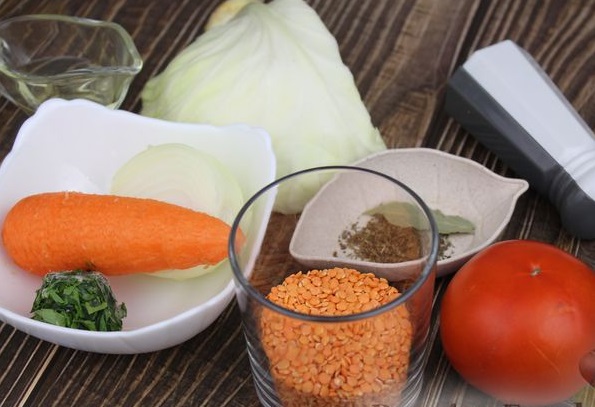 Stewed cabbage is not uncommon on our table. Often such a dish serves as a side dish. But what to do on days when neither fish nor meat is on the menu? Add nutritious and healthy lentils to stewed cabbage with carrots and onions, and you get a full-fledged lunch or dinner, hearty and tasty. Thanks to the spices, the dish turns out to be very aromatic, and the tomato adds a slight sourness!