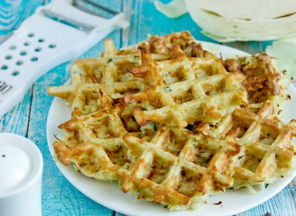 Cabbage waffles cooked in an electric waffle iron is a tasty dish, quick to prepare, and quite original. We can say that these are cabbage cutlets but in an unusual design. Cabbage waffles are good as a snack with sour cream or other sauce.