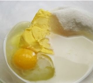 Mixed butter, milk, egg, sugar, and vanilla sugar.