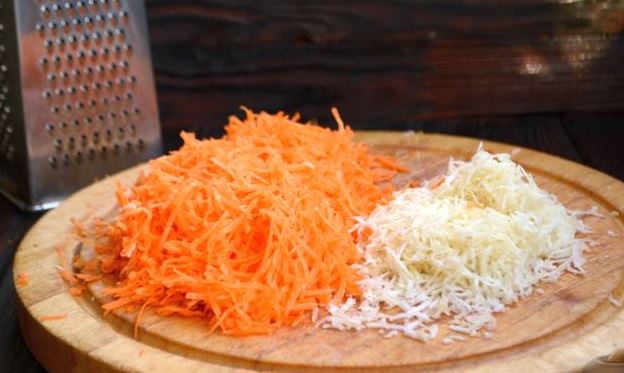 Grate celery and carrots on a fine grater. Fold the prepared apples, celery, and carrots into a blender bowl. Grind with an immersion blender until pureed.