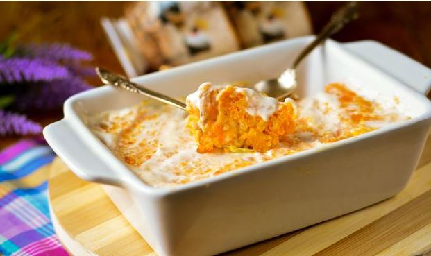 Cook the rice and carrot casserole in the oven at 220 ° C for 30 minutes. Brush with sour cream while still warm carrot casserole with rice. Sour cream is absorbed a little and you get a delicate dessert.