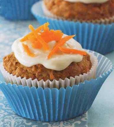 This recipe muffins are sweet pastries with carrots and apples, decorated with cream cheese cream.