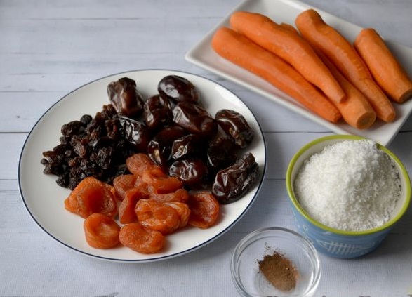 Carrot Sweets with Dates, Dried Apricots, and Raisins