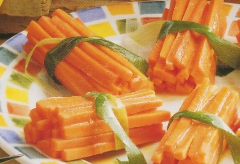For this dish, carrots are cut into long cubes and prepared with the addition of orange juice and cumin.