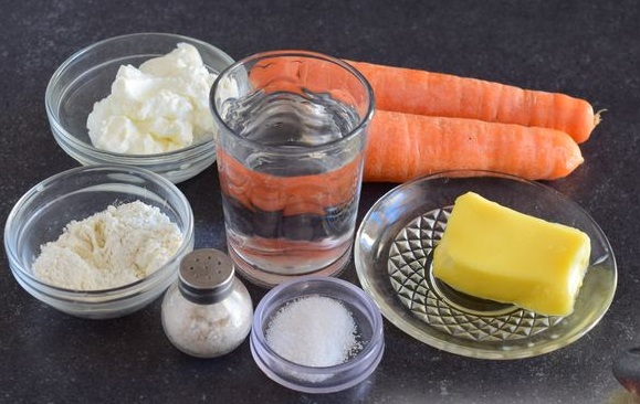 Peel the carrots and cut them into cubes. Send the carrots to the pot. Add salt and sugar. Pour in 120 ml of water.