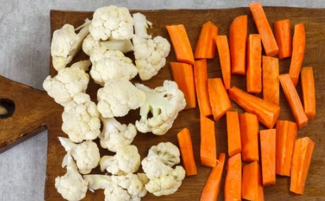 Disassemble the cauliflower into large inflorescences, removing the head. Peel and cut the carrots into small pieces 3-5 cm long and about 1 cm wide.