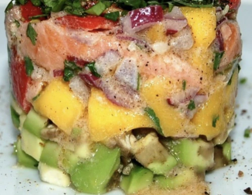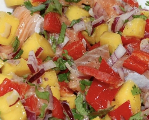 Ceviche is a Mexican dish. Most often ceviche is prepared from raw fish marinated in sour lime, lemon, orange juice. Various additives are possible. I liked this salmon ceviche recipe and hastened to prepare it. I liked the result, I will do it again. It is very convenient to cook as a festive dish, because you can make it in advance, before the arrival of guests. So, try and taste the salmon ceviche.