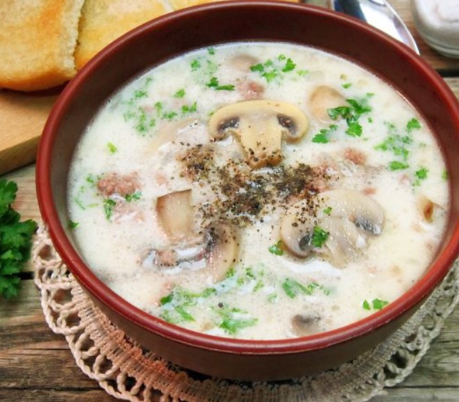 Comments for "Cheese Soup with Minced Meat and Pickled Mushrooms"