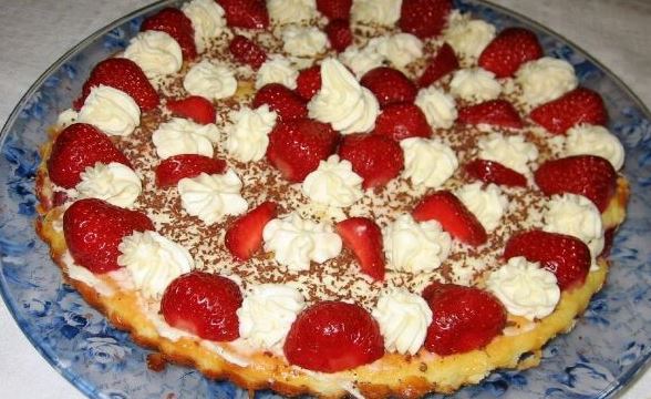 A light and tasty summer meal made from available products. Cheesecake in the oven (curd casserole) with strawberries is quick and easy to prepare.