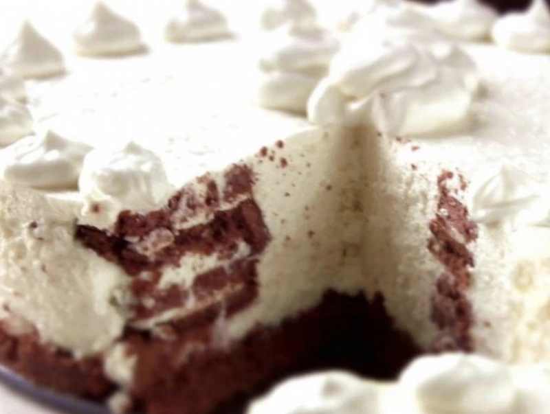 8. Use a dry knife to separate the cheesecake from the pan, remove it and garnish with whipped cream.