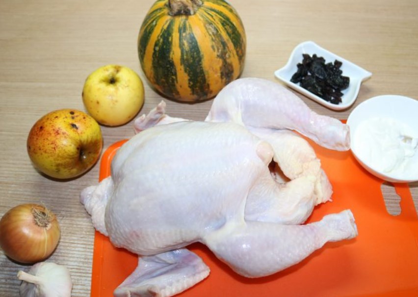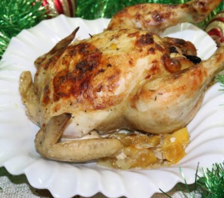 Stuff the chicken with apples and prunes.