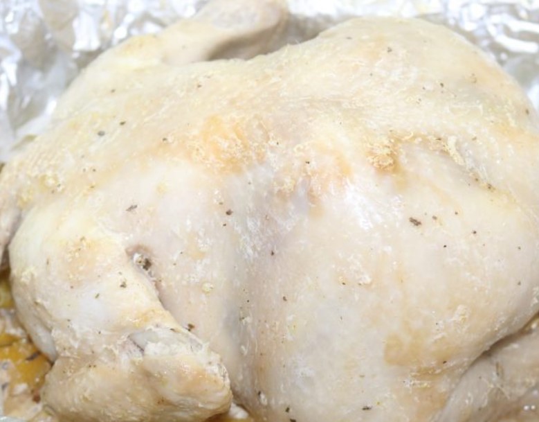 Unroll the foil, open the chicken.