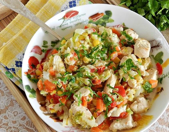 A healthy and light dish from the available products is chicken fillet with Chinese cabbage. Peking cabbage is very tender, does not require long heat treatment, so the dish is cooked quickly enough.