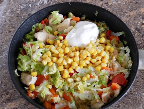 Add corn, sour cream, stir, heat to a boil, and simmer for another 2 minutes.