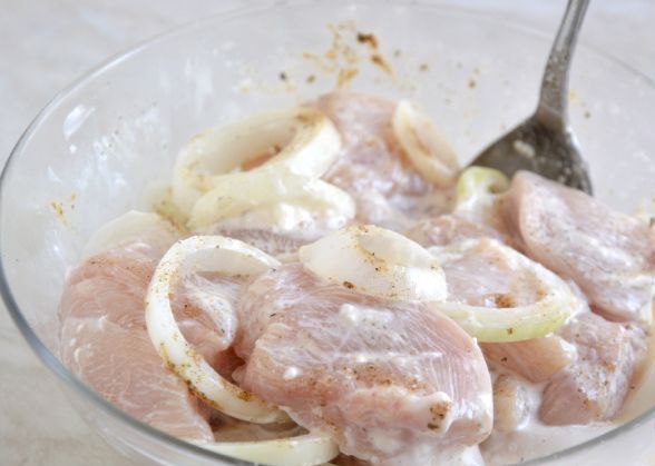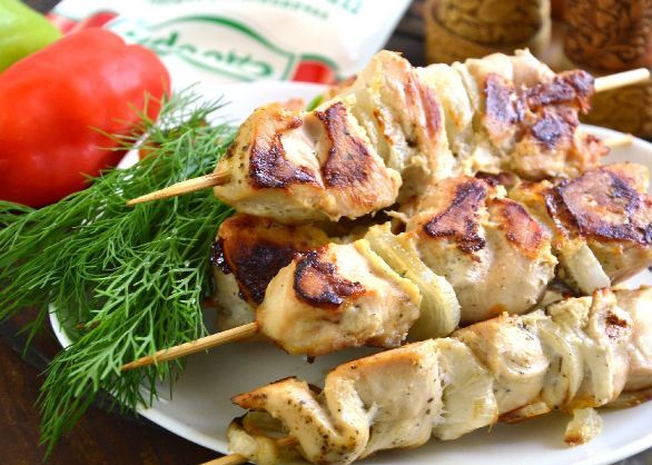 Delicious and tender chicken breast kebab marinated with mayonnaise, onion and spices.