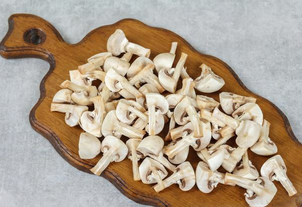 Wash the champignons, dry and cut into 4 parts or large pieces.