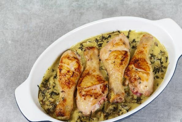 Chicken drumsticks in creamy mustard sauce are ready. Serve the dish to the table hot, adding boiled rice, noodles, vegetable salad or other side dish to your taste if desired.