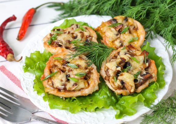 Chicken tartlets with mushrooms and cheese can also be made for dinner, if you keep an eye on your figure. They contain practically no carbohydrates, so tasting such a dish will not affect your sides!